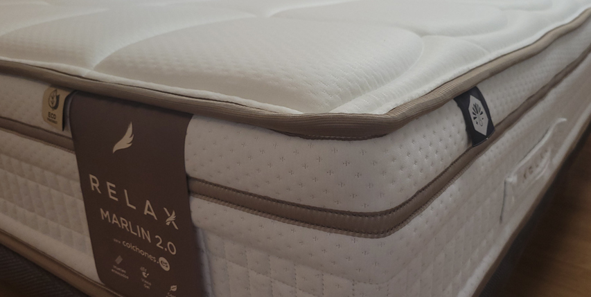 El colchón Marlín 2.0 de Relax, cuenta con un núcleo de muelles ensacados con refuerzo prerimetral que le otorga independencia de lechos y estabilidad. Acolchado en la cara superior con una capa de ViscoGel, adaptable y termosensible y varias capas de HR Supersoft, Medium y Firm, que lo hacen más confortable y duradero. Tapizado con tejido Strech, suave y elástico. Además en la cara inferior cuenta con una capa de HR Air Plus que lo hace mucho más transpirable. Tiene una firmeza de 4 sobre 6, por lo que lo consideramos medio-duro y un grosor de 28 cm.| Dimensiones | N/D |