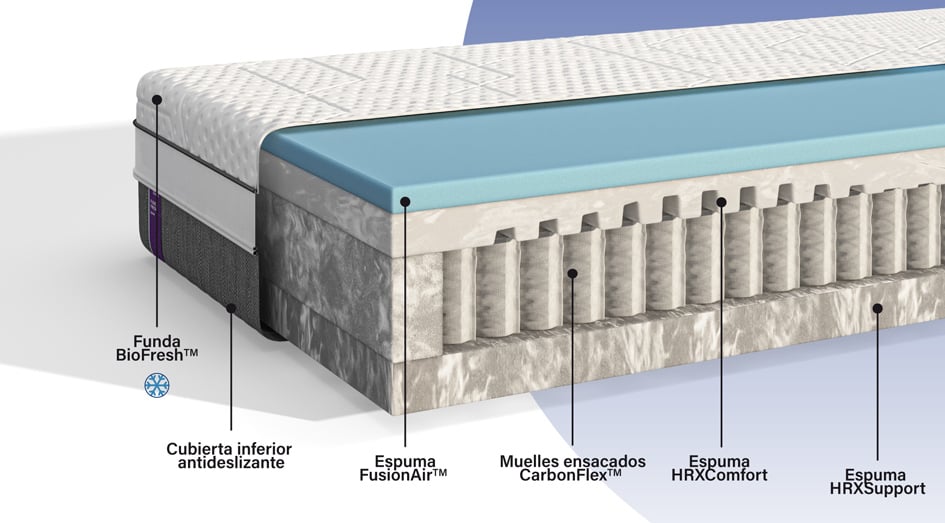 Este colchón está pensado para personas con alergia y/o calurosas. Cuenta con un acolchado con espuma FusionAir, que aumenta la circulación de aire mejorando la transpirabilidad. Con funda Biofresh, muy fresca y con microcápsulas biológicas que limpian los alérgenos y bacterias del colchón.