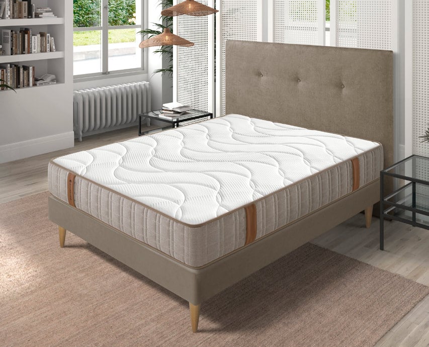 Este colchón está acolchado por ambas caras con capa de Viscoelástica, adaptable a la forma del cuerpo, y Foam Perfilado, que da transpirabilidad y ergonomía. Está tapizado con Tejido Quality, con un tacto seda con las ventajas del algodón y la practicidad del poliéster.