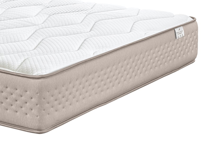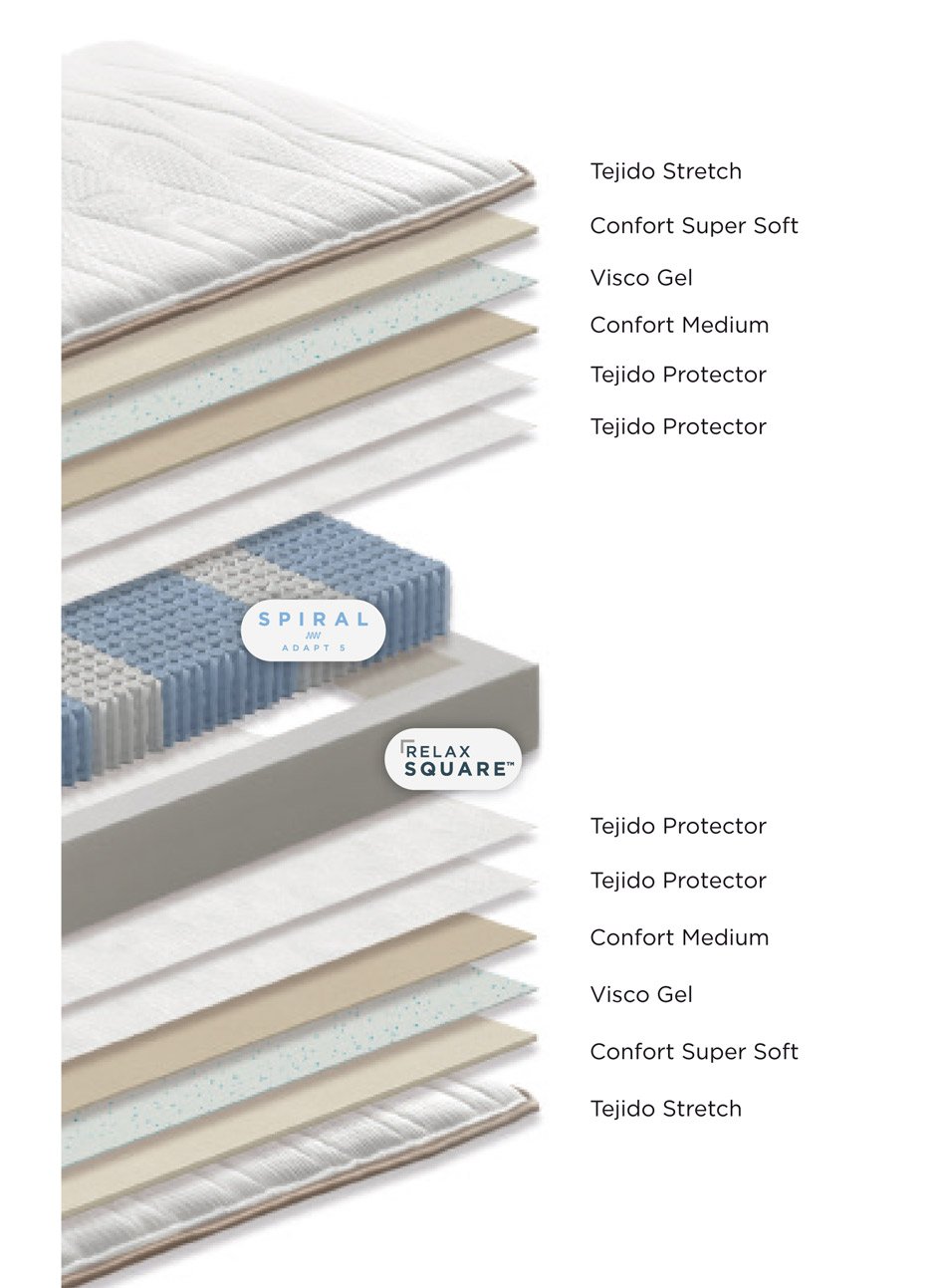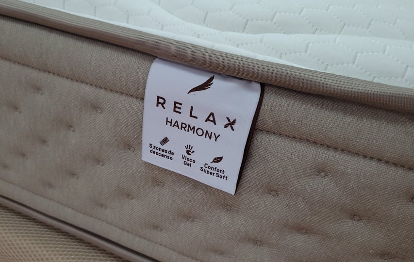 El nuevo colchón Harmony de Relax cuenta con un núcleo de muelles ensacados Spiral Adapt, con 5 zonas de descanso, de forma que cada parte de tu cuerpo descansa sobre la firmeza adecuada. Acolchado con Viscogel, adaptable y termoregulador, y espumación Confort, estable y confortable. Disponible en 2 grosores: 23 y 26 cm. Tapizado con tejido Strech, elástico y suave. Cuenta con el tratamiento Hygienic, antiácaros y bactericida. Tiene una firmeza 4 sobre 6, pero es muy adaptable y da una sensación recogida del cuerpo.| Dimensiones | N/D |