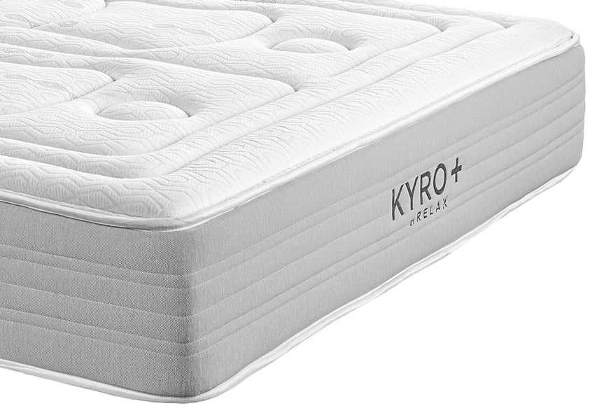 El colchón Kyro + de Relax cuenta en su núcleo con la tecnología Tecnum, muelles ensacados en 7 zonas, combinados con HR en forma de ondas para conseguir una ergonomía perfecta y facilitar los movimientos durante la noche. Acolchado con Viscogel que ayuda a disipar el calor. Tapizado con tejido Stretch con tratamiento antiestático que evita el efecto de cargas eléctricas negativas en tu cuerpo. Al no generar presión, proporciona una acogida progresiva con una temperatura óptima para evitar la sudoración. Su firmeza es 4 suave y tiene un grosor de 28 cm.| Dimensiones | N/D |