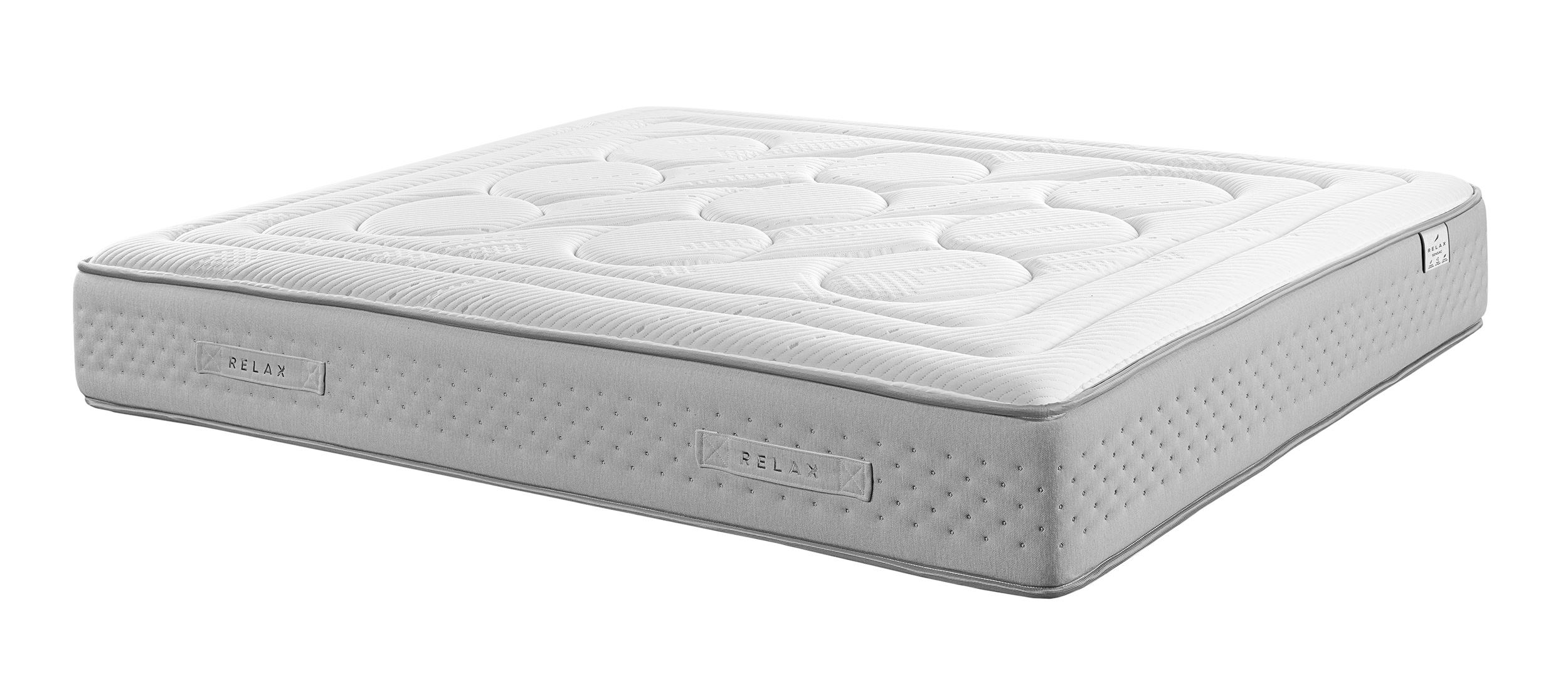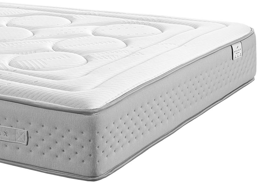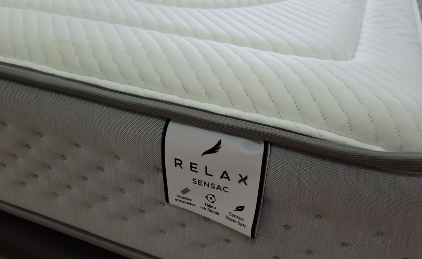 El nuevo colchón Sensac de Relax presenta un núcleo de muelles ensacados Spiral Adapt, con refuerzo perimetral, reforzado y duradero. Acolchado en ambas caras con Viscogel, adaptable y termoregulador, y Confort Supersoft, Medium y Firm. Tapizado con tejido Strech con Ion Repair, sistema Relax Antistress. Tiene una firmeza 4 sobre 6, por lo que lo consideramos medio-duro y un grosor de 28 cm. Cuenta con el tratamiento Hygienic, antiácaros y bactericida.| Dimensiones | N/D |